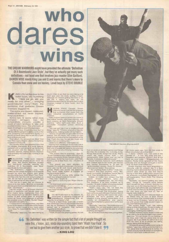 They’re a disarmingly quiet pair, a factor that reinforces rumours that Dream Warriors are big on Dungeons & Dragons. Indeed, games are a metaphor that surfaces regularly on the album. Q acknowledges the debt. “Yeah, it’s just role-playing games. It’s not that we dwell on all these games and things like that. It’s everyday life, everyday living. Things that we did, things that we do. That’s where our music comes from - our background’s West Indian and we live in Canada. It creates a different sound.”